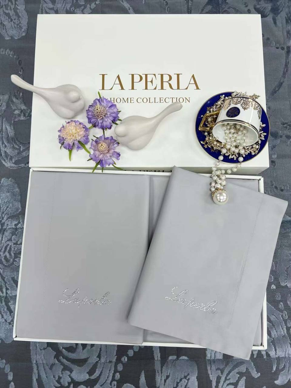 Комплект постельного белья La Perla LUX-95440 – это изысканный выбор для спальни, сочетающий в себе элегантность и комфорт. Белье выполнено в нежном сером цвете, что создает атмосферу спокойствия и уюта. Комплект украшен изысканной вышивкой с названием бренда.