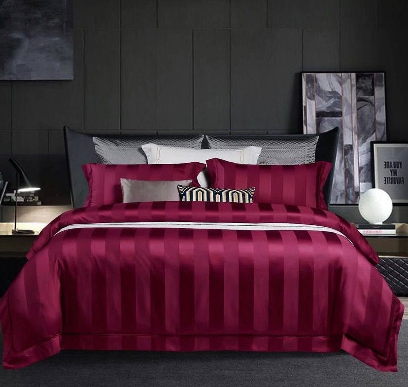 Комплект постельного белья La Perla LUX-102821 представляет собой роскошный комплект в бордовом цвете с вертикальным полосатым узором, который придает изделию элегантность. Этот комплект предназначен для создания комфортной и стильной атмосферы в спальне, идеально подходящей для тех, кто ценит роскошь и качество.