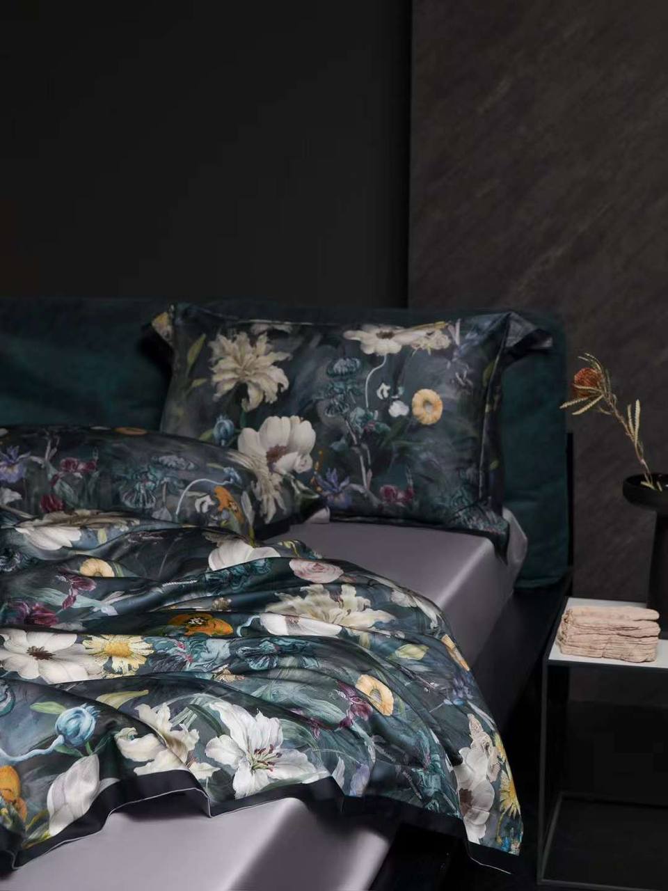 Комплект постельного белья La Perla LUX-108970 – это изысканный предмет интерьера, который сочетает в себе роскошь и комфорт. Постельное белье выполнено в темных тонах с цветочным принтом, создавая атмосферу уюта и элегантности в спальне. Этот комплект станет отличным выбором для тех, кто ценит высокое качество и стиль.