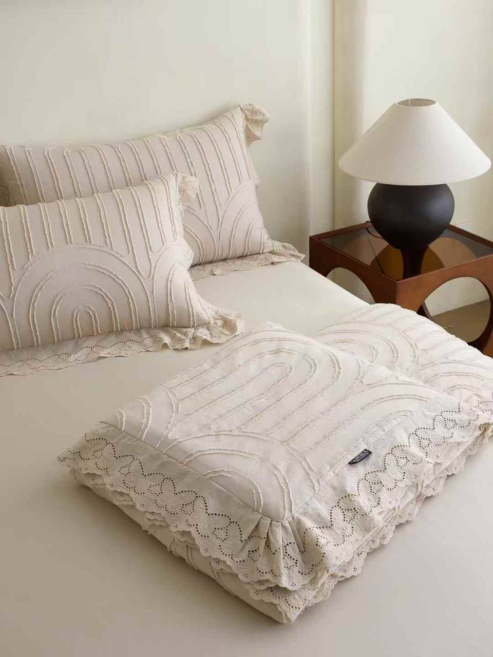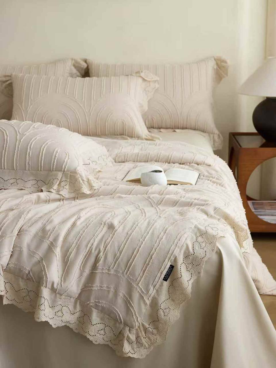 Нежный и изысканный комплект постельного белья La Perla привнесет в вашу спальню атмосферу уюта и элегантности. Текстурированный материал и кружевные детали создают неповторимый образ. Идеальный выбор для тех, кто ценит комфорт и стиль в каждой детали.