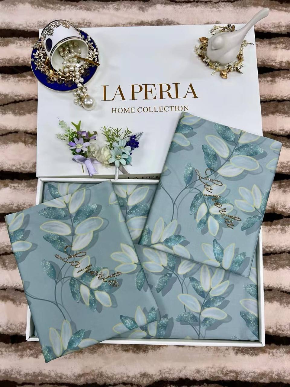 Комплект постельного белья La Perla LUX-85369 — это изысканный текстиль для спальни, выполненный в нежном стиле. Комплект в серо-голубых тонах с цветочным принтом.