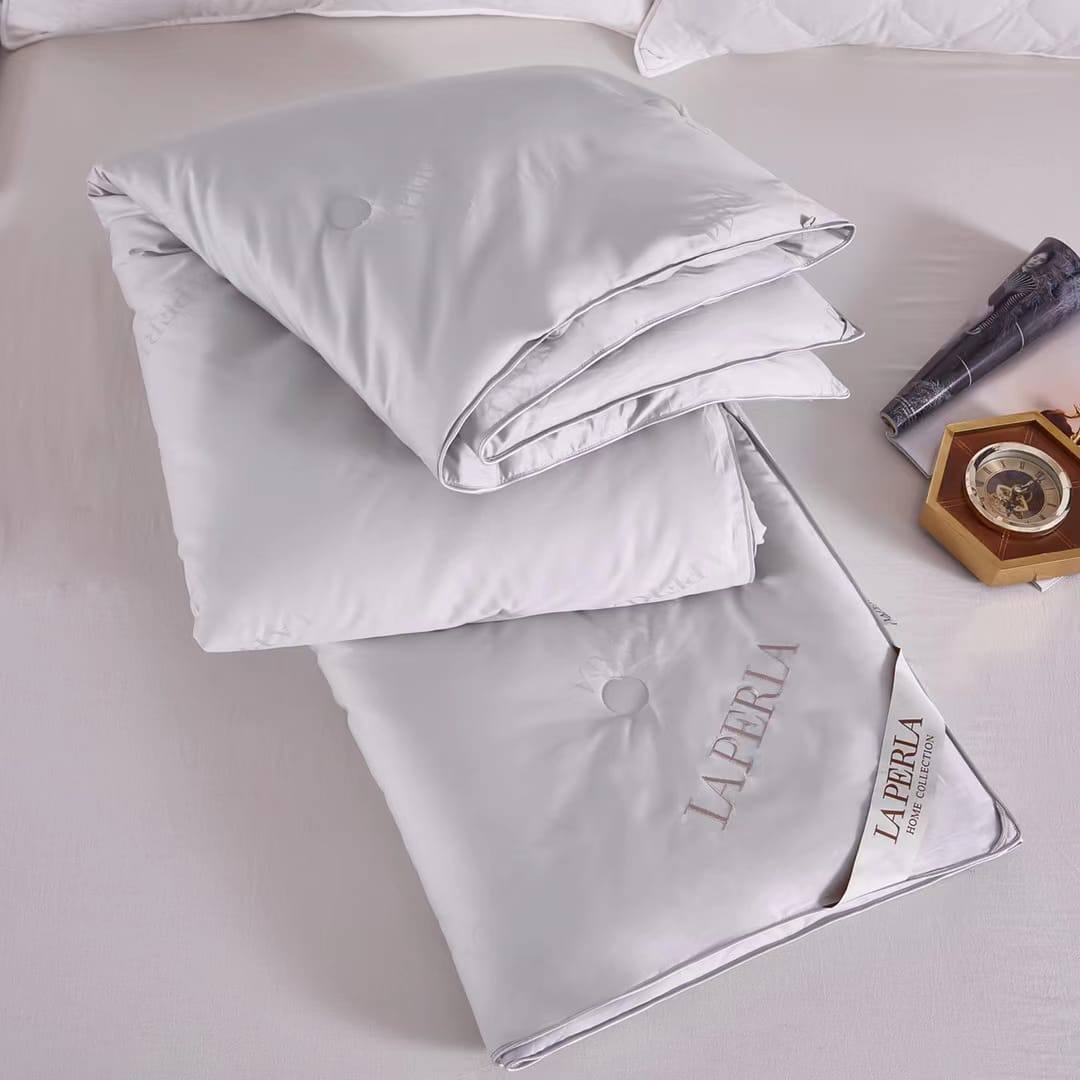 Одеяло La Perla LUX-104614 представлено в элегантном серебристом цвете. Это стеганое одеяло, которое выглядит мягким и легким. Одеяло предназначено для создания комфортной атмосферы в спальне.