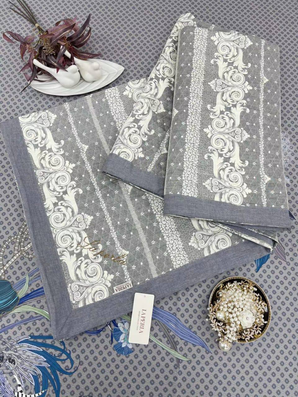 Элегантный плед La Perla LUX-48347 выполнен в классическом стиле, украшенный изысканным узором в стиле барокко. Его роскошный дизайн и высокое качество делают его идеальным дополнением к интерьеру спальни или гостиной, добавляя изящества и уюта.