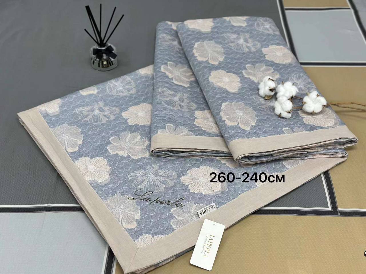 Покрывало La Perla LUX-90117 выполнено в элегантном стиле. Оно имеет светло-серый оттенок с изысканным цветочным узором и бежевым кантом. Текстура покрывала придает ему утонченный вид, а его назначение - создание комфортной атмосферы в спальне.