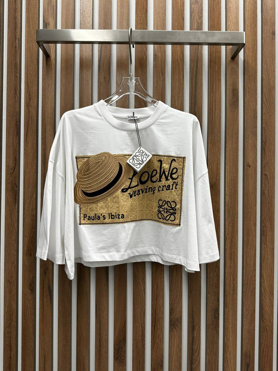 Футболка Loewe LUX-92692, представленная на изображении, — это стильная белая футболка с короткими рукавами и красочным принтом на груди. Она сочетает в себе спортивный стиль и элементы дизайна, делая ее подходящей для повседневной носки. Футболка имеет круглый вырез и прямой крой, обеспечивая комфорт и свободу движений.