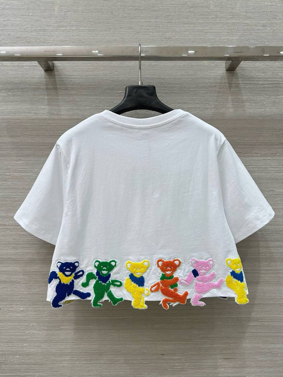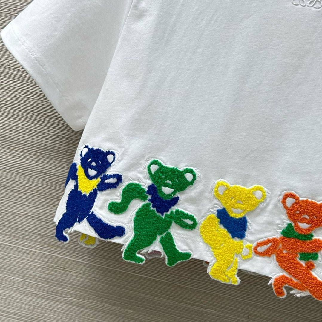 Футболка Loewe LUX-120959 — это стильная и оригинальная модель, сочетающая в себе классический крой и яркий, запоминающийся дизайн. Изделие выполнено в белом цвете и украшено вышивкой с изображением разноцветных мишек в нижней части.
