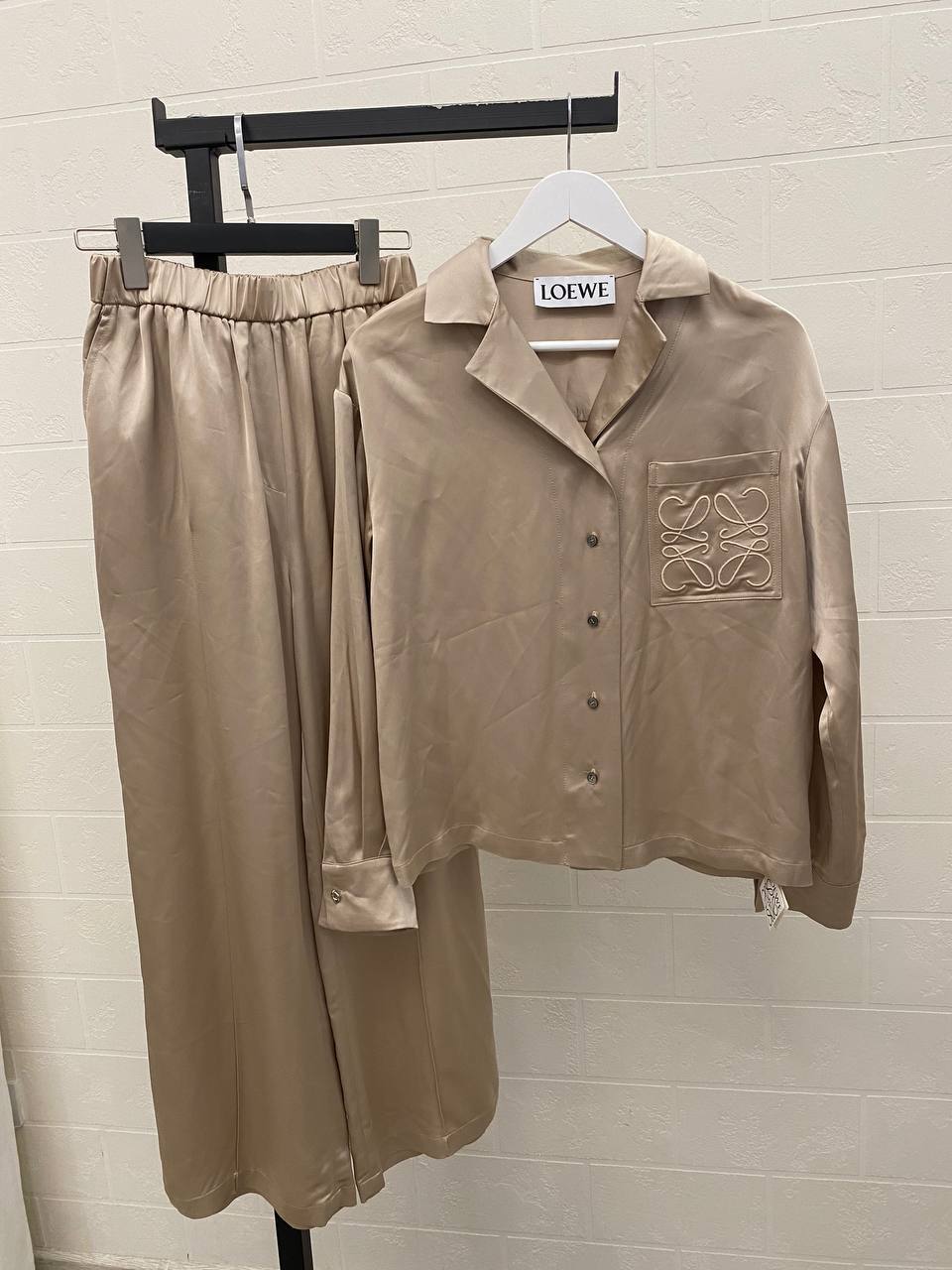 Костюм женский Loewe LUX-106753 - это изысканный комплект, который сочетает в себе элегантность и современный стиль. Комплект состоит из рубашки и брюк, выполненных в нежном бежевом цвете. Он идеально подойдет для создания утонченного образа.