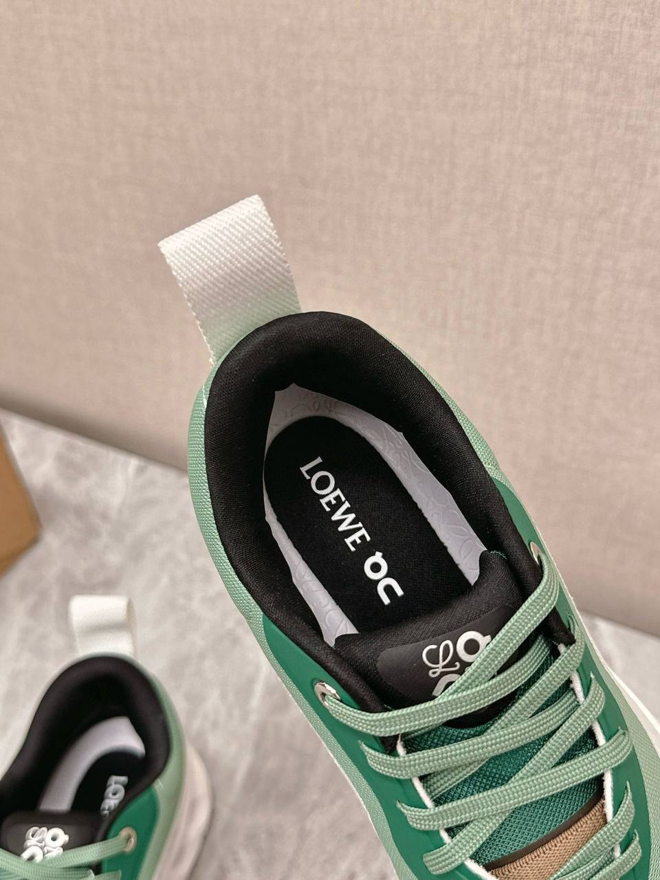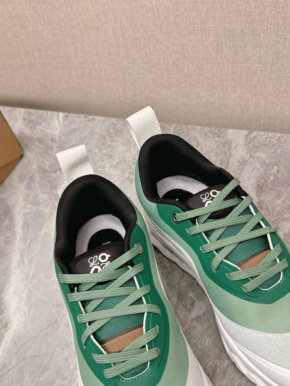 Кроссовки Loewe LUX-119166 - это сочетание современности и функциональности. Дизайн выделяется плавными линиями и градиентным переходом от белого к зеленому цвету. Обувь идеально подходит для повседневной носки и активного образа жизни.