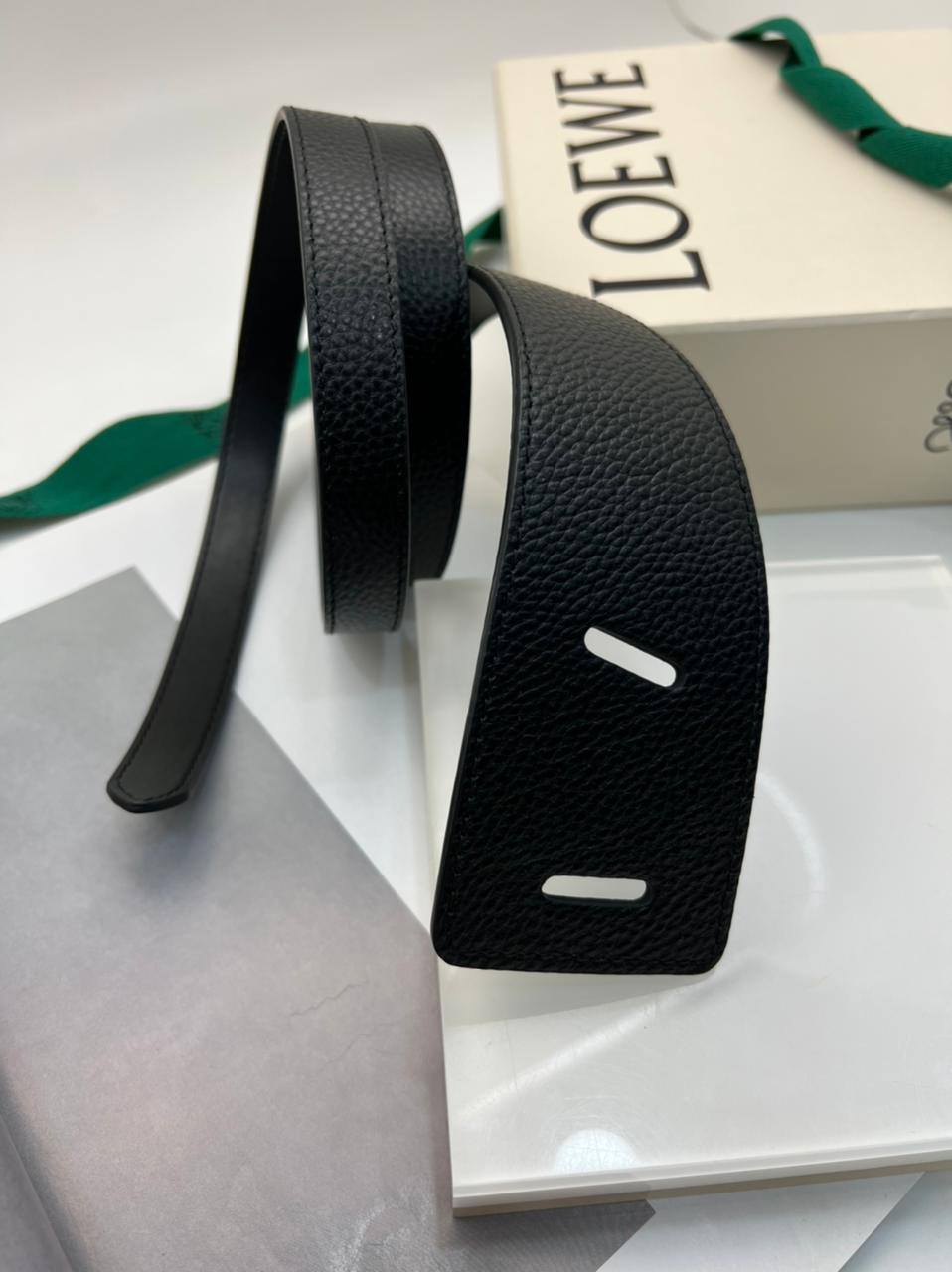 Ремень женский Loewe LUX-79250 — это стильный аксессуар, который подчеркнет индивидуальность и дополнит любой образ. Черный ремень из кожи с зернистой текстурой выглядит элегантно и подходит для повседневного использования и особых случаев.