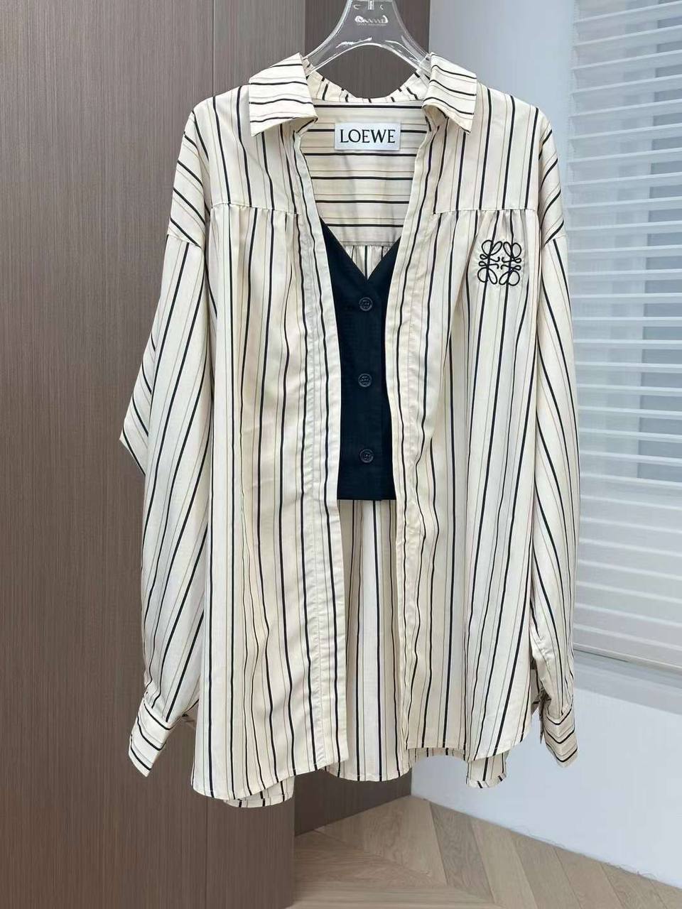 Рубашка Loewe LUX-91691 — это стильная рубашка в полоску кремового цвета с чёрными полосами, создающая элегантный и современный образ. Она выполнена в классическом стиле с акцентом на деталях и логотипом бренда. Эта рубашка подходит как для повседневной носки, так и для более формальных мероприятий.