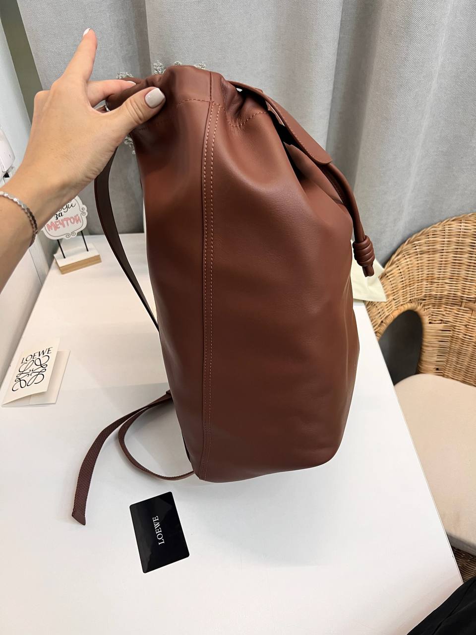 Рюкзак Loewe LUX-110959 выполнен в современном стиле, имеет коричневый цвет и мягкую текстуру. Этот аксессуар предназначен для повседневного использования, сочетает в себе функциональность и элегантность, подходит для городских прогулок или путешествий.
