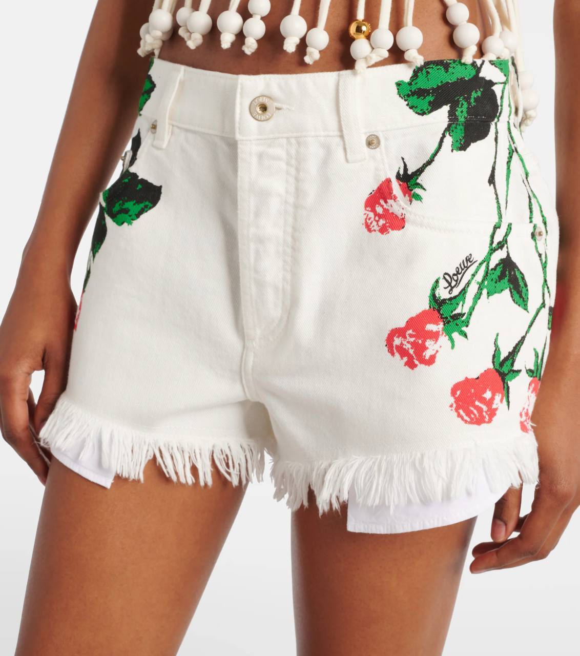Шорты Loewe Shorty 13 (LUX-119696) представляют собой воплощение летнего стиля с элементами эксклюзивности. Белые шорты украшены красочным цветочным принтом и дополнены бахромой по краю, что придает им игривый вид. Эти шорты идеально подойдут для создания ярких и запоминающихся образов на каждый день.