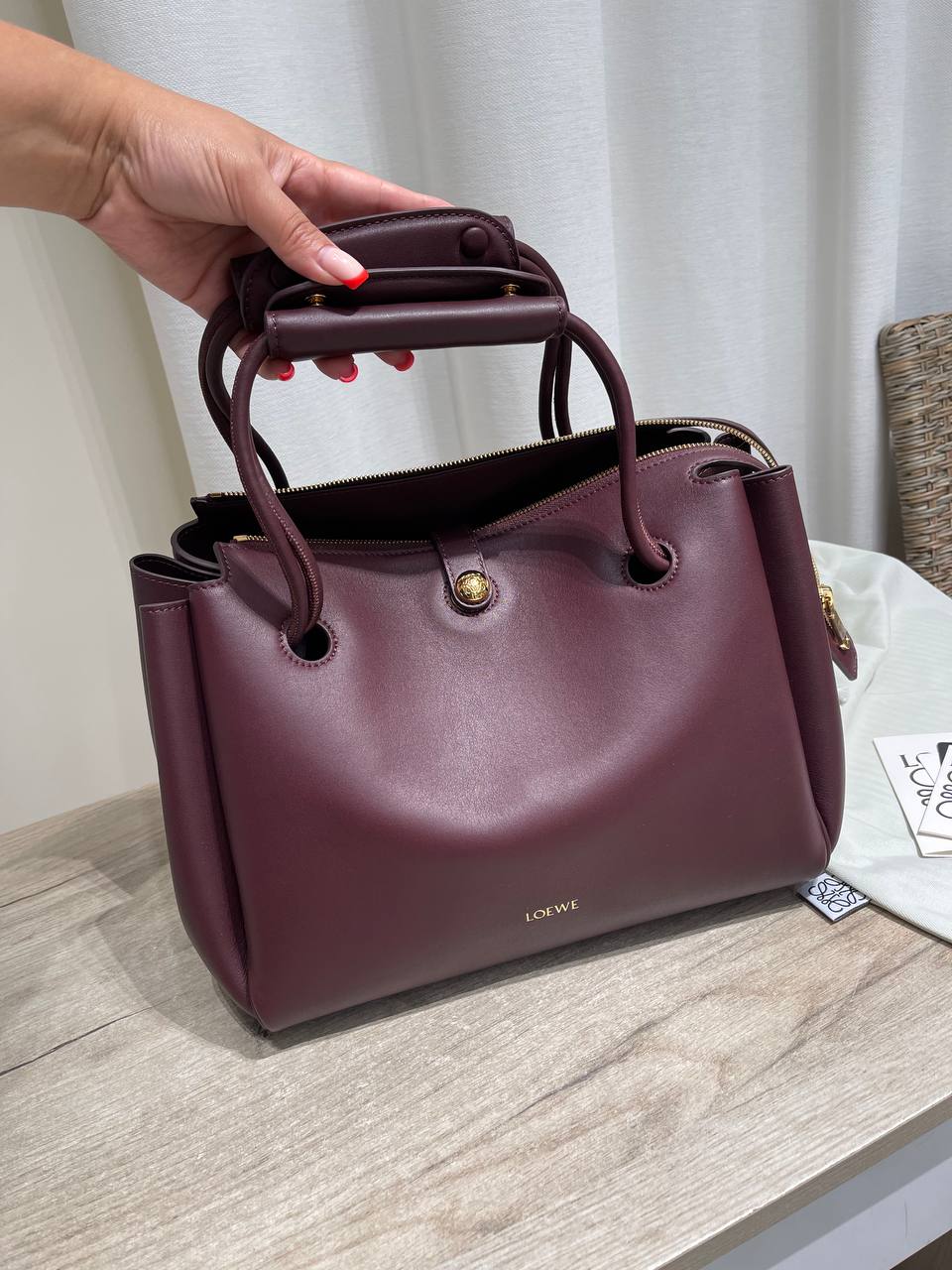 Сумка женская Loewe LUX-121929 – это элегантный аксессуар, сочетающий в себе минимализм и изысканность. Модель выполнена в благородном винном оттенке и станет отличным дополнением к любому образу.