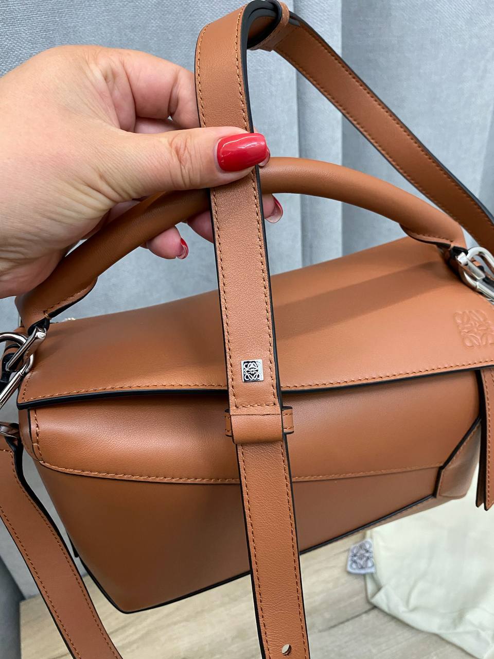 Сумка женская 24 cm Loewe LUX-110966 - это элегантная сумка, выполненная в современном стиле. Она выполнена в коричневом цвете с уникальной геометрической формой. Сумка имеет лаконичный дизайн и предназначена для повседневного использования.
