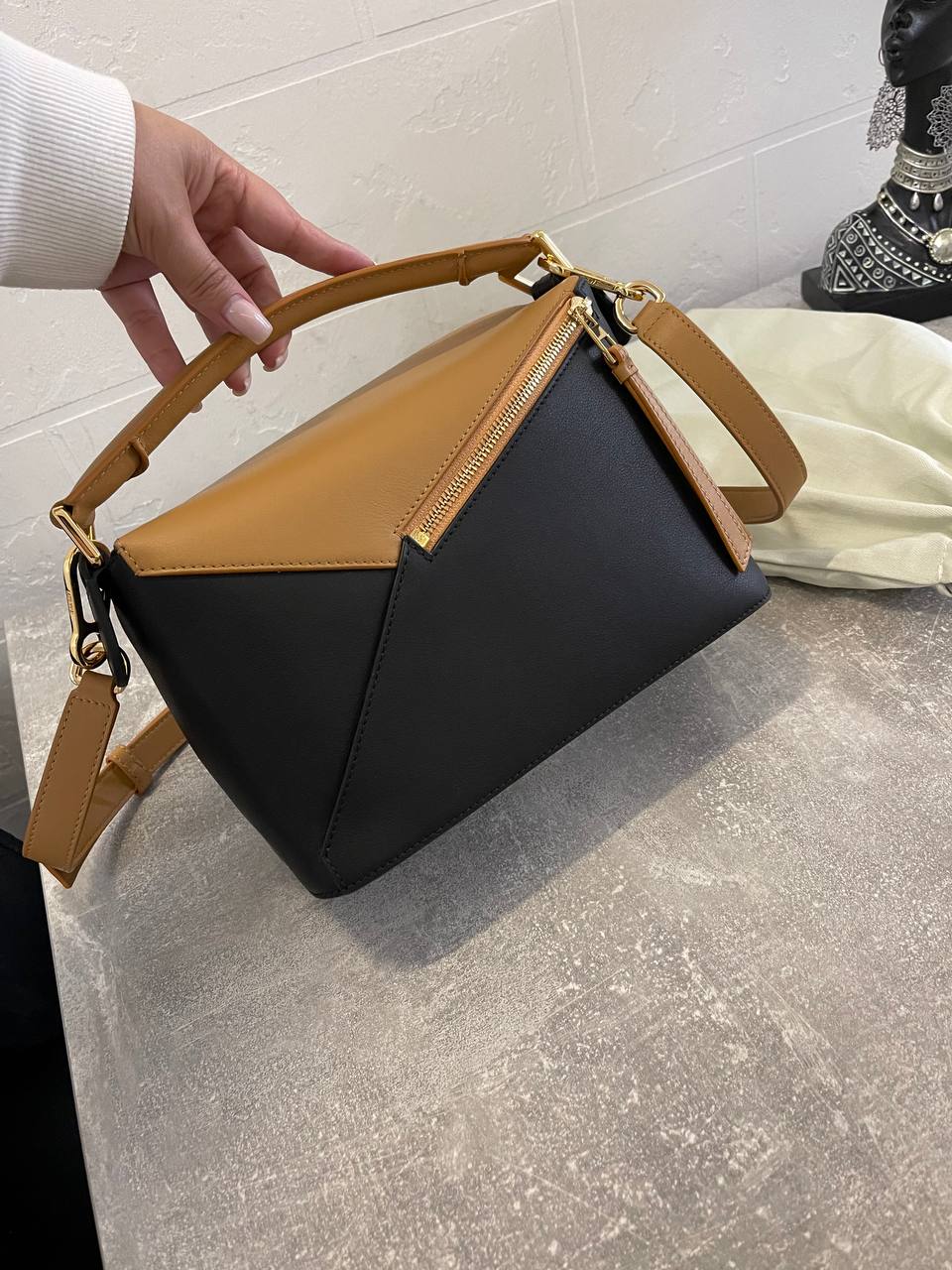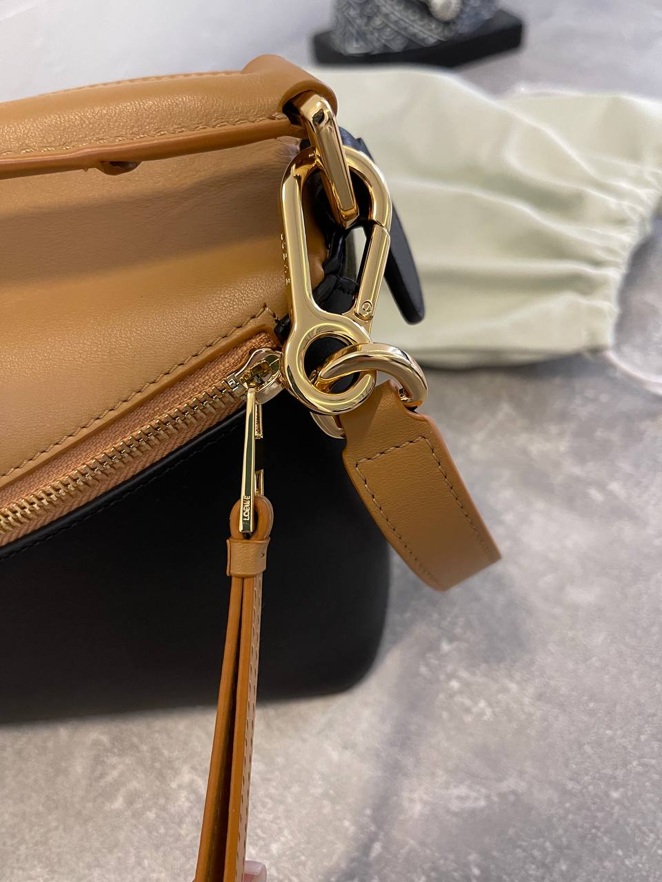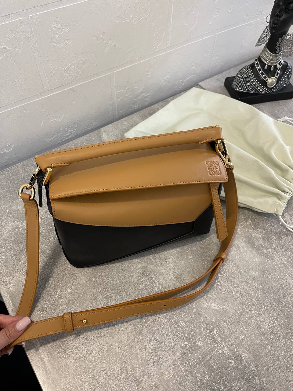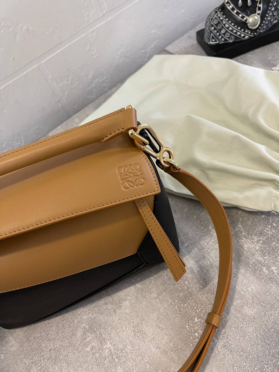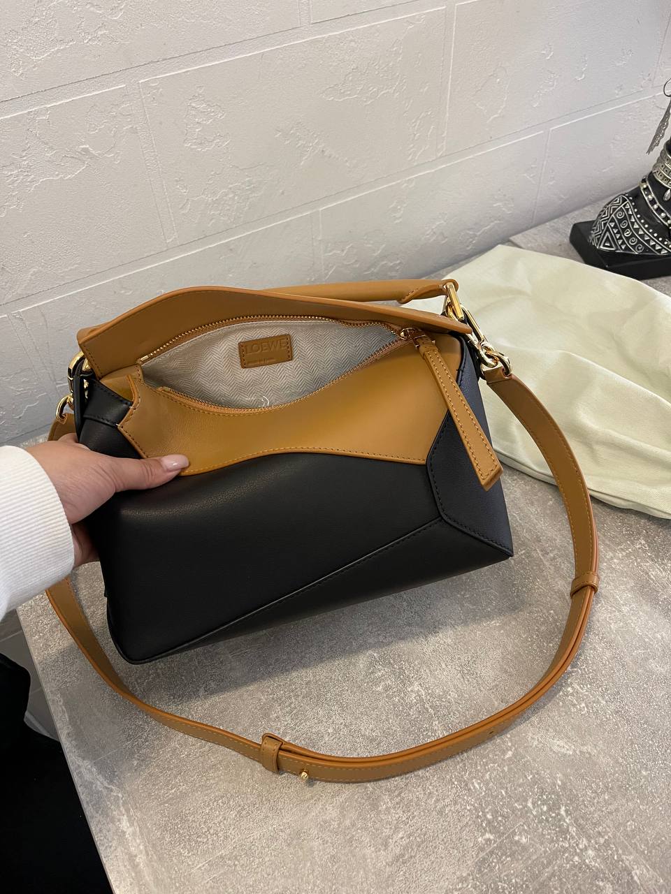 Сумка женская 24 cm Loewe LUX-110971 - это стильный аксессуар для современной женщины. Сумка выполнена в сочетании черного и коричневого цветов, что придает ей элегантный вид. Она подходит для повседневной носки, а также для создания более формальных образов.