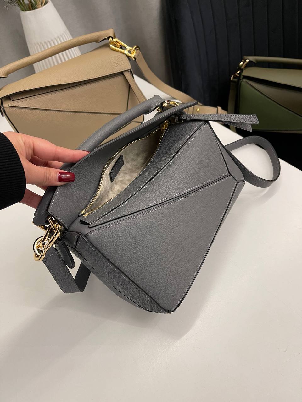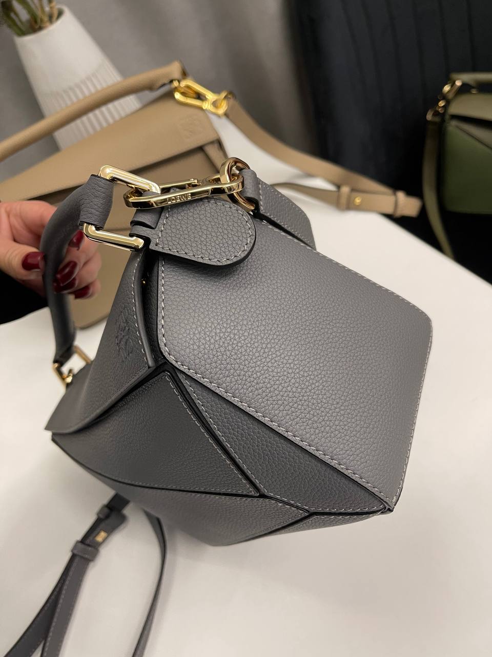 Сумка женская 24 см Loewe LUX-115323 — это элегантная сумка, выполненная в современном стиле. Сумка серого цвета с текстурированной поверхностью, оснащена удобной ручкой и съемным плечевым ремнем. Она идеально подходит для повседневного использования.