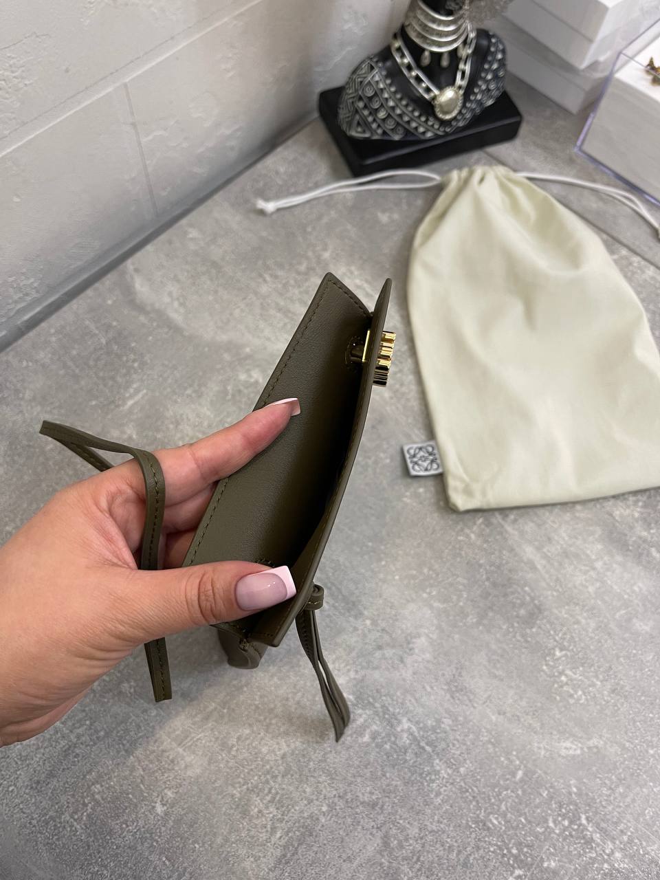 Сумка женская Loewe LUX-104909 представляет собой элегантный аксессуар в минималистичном стиле. Она выполнена в оливковом цвете, который придает сумке изысканность и универсальность. Сумка имеет компактный прямоугольный формат, который идеально подходит для повседневного использования.