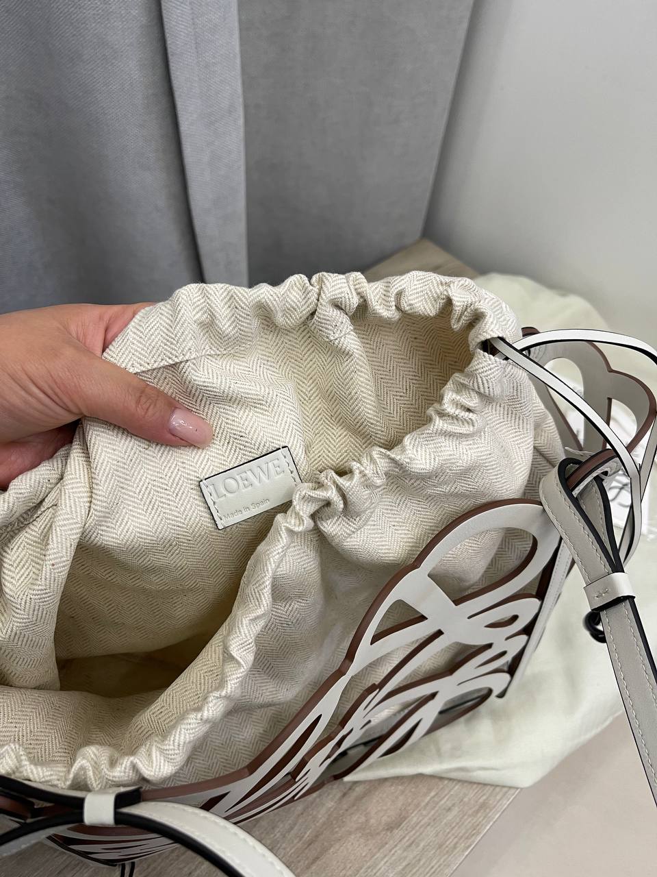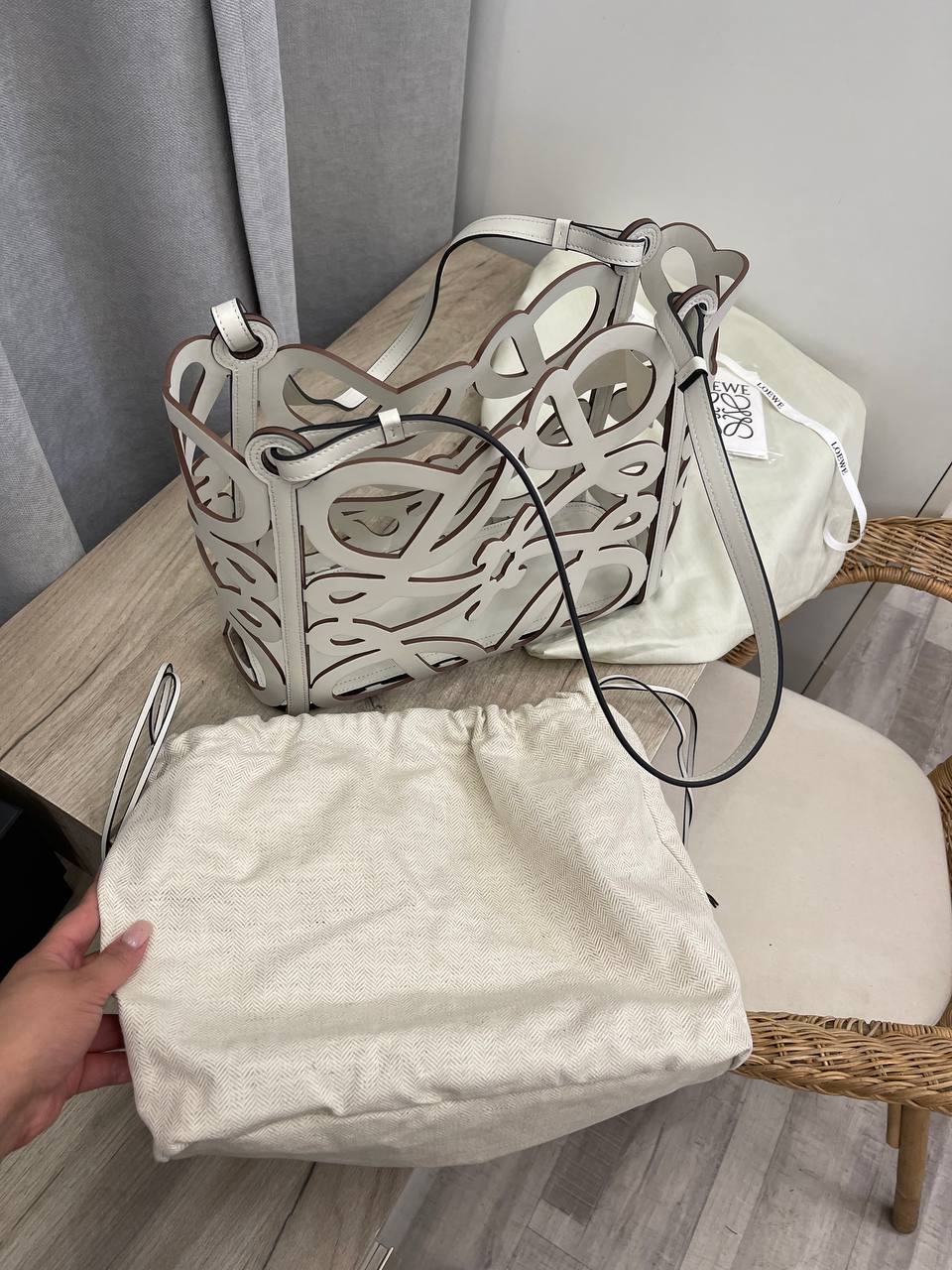 Сумка женская Loewe LUX-107854 — это элегантный аксессуар для стильных женщин. Она выполнена в белом цвете с ажурным узором, который придает ей изысканный вид. Сумка имеет просторное внутреннее отделение, что делает её практичной и удобной для повседневного использования.