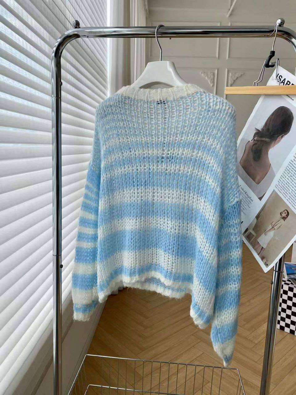 Свитер Loewe LUX-93709 – это стильный предмет гардероба, выполненный в современном стиле. Свитер имеет бело-голубые полосы, создавая эффектный и свежий образ. Этот свитер идеально подойдет для создания повседневных и расслабленных образов.