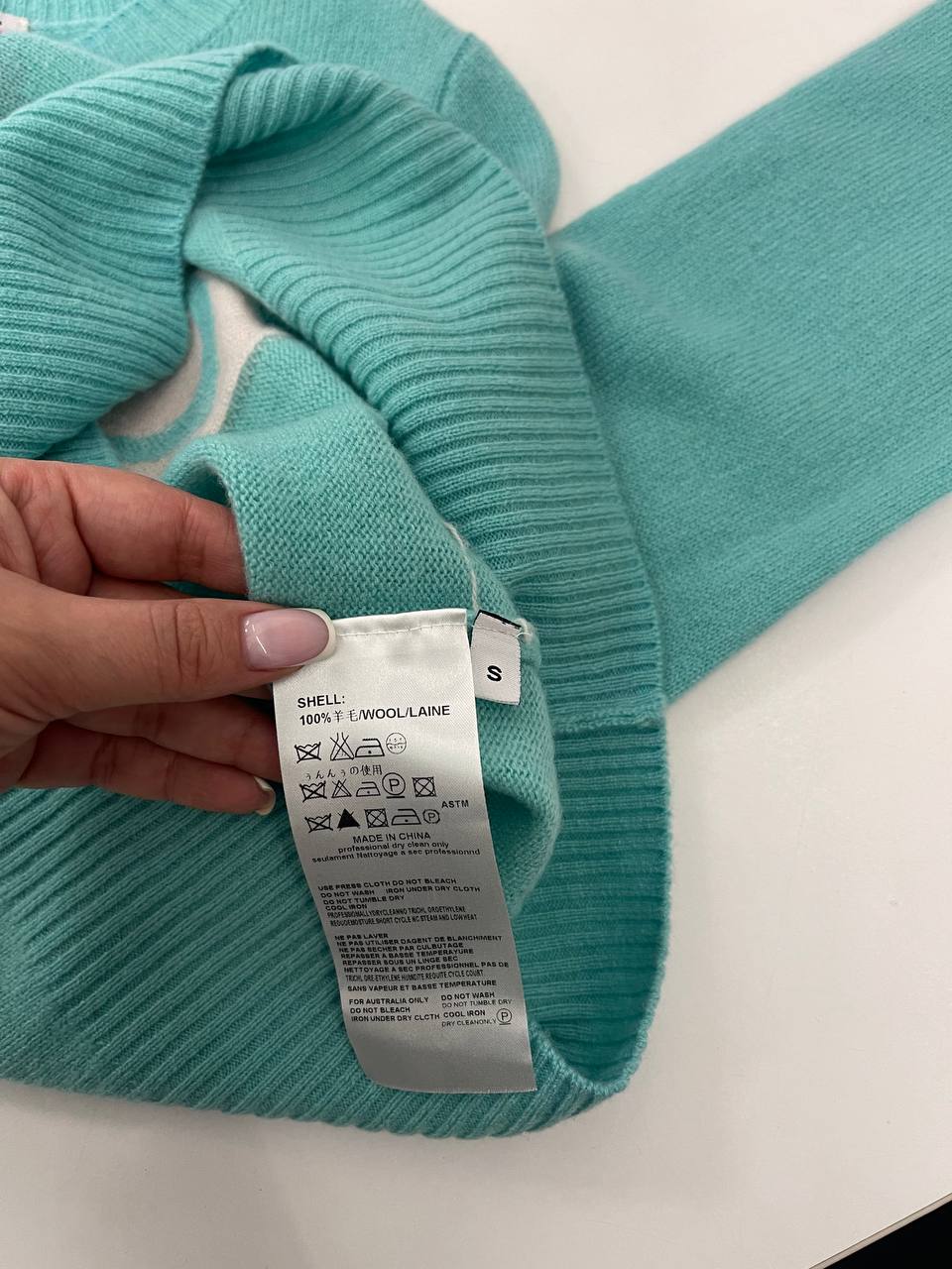 Свитер женский Loewe LUX-100338 — это яркий предмет гардероба, выполненный в бирюзовом цвете. Спереди свитер украшен крупным логотипом бренда, выполненным в розовом и белом цветах. Такой свитер станет отличным выбором для создания стильных и комфортных образов.