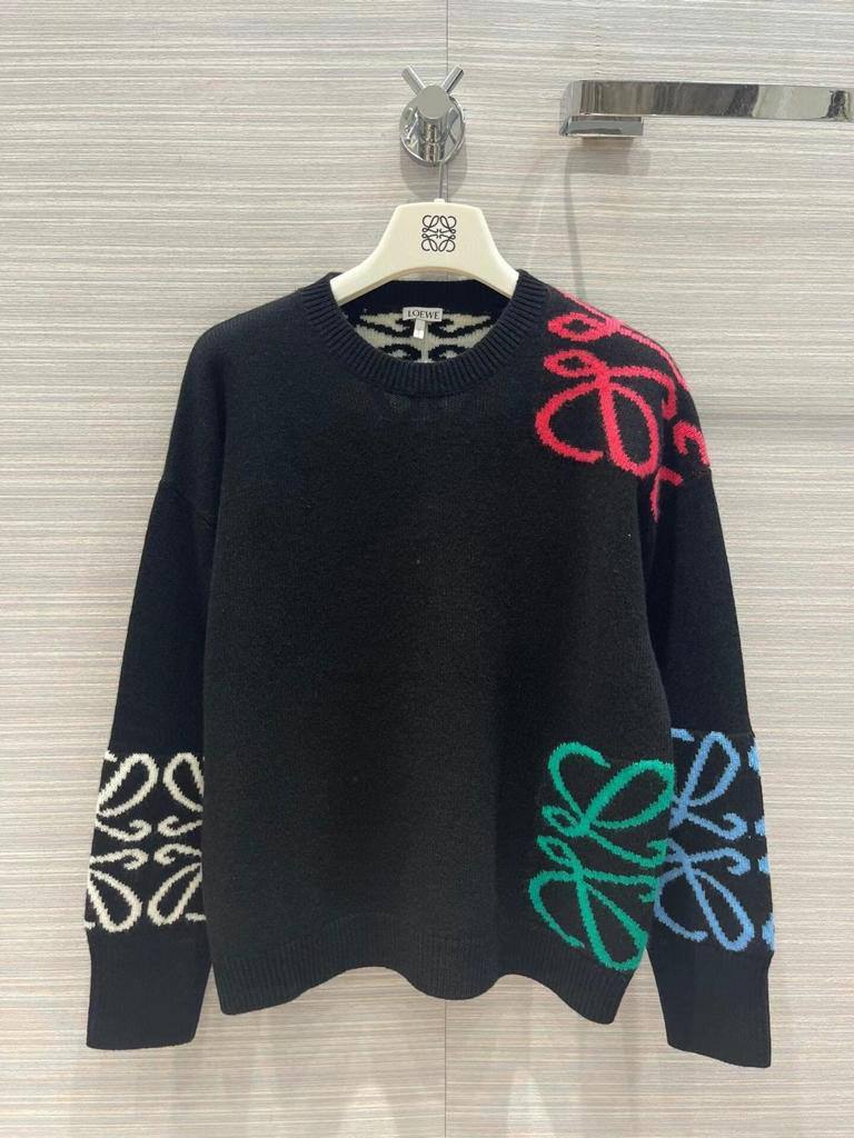 Свитер женский Loewe LUX-74074 – это стильный предмет гардероба от известного бренда. Свитер выполнен в классическом черном цвете с яркими акцентами в виде узоров на плечах и рукавах. Его дизайн позволяет создавать различные образы, от повседневных до более нарядных.