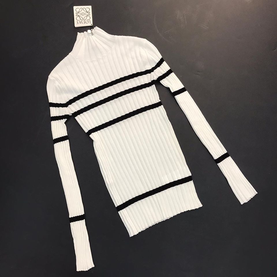 Элегантная женская водолазка Loewe LUX-23207 выполнена в классическом стиле, сочетая в себе утонченность и комфорт. Белый цвет с контрастными черными полосами делает ее универсальным элементом гардероба, подходящим для различных образов. Высокий воротник-гольф и приталенный силуэт подчеркивают достоинства фигуры, а ребристая текстура добавляет изысканности.