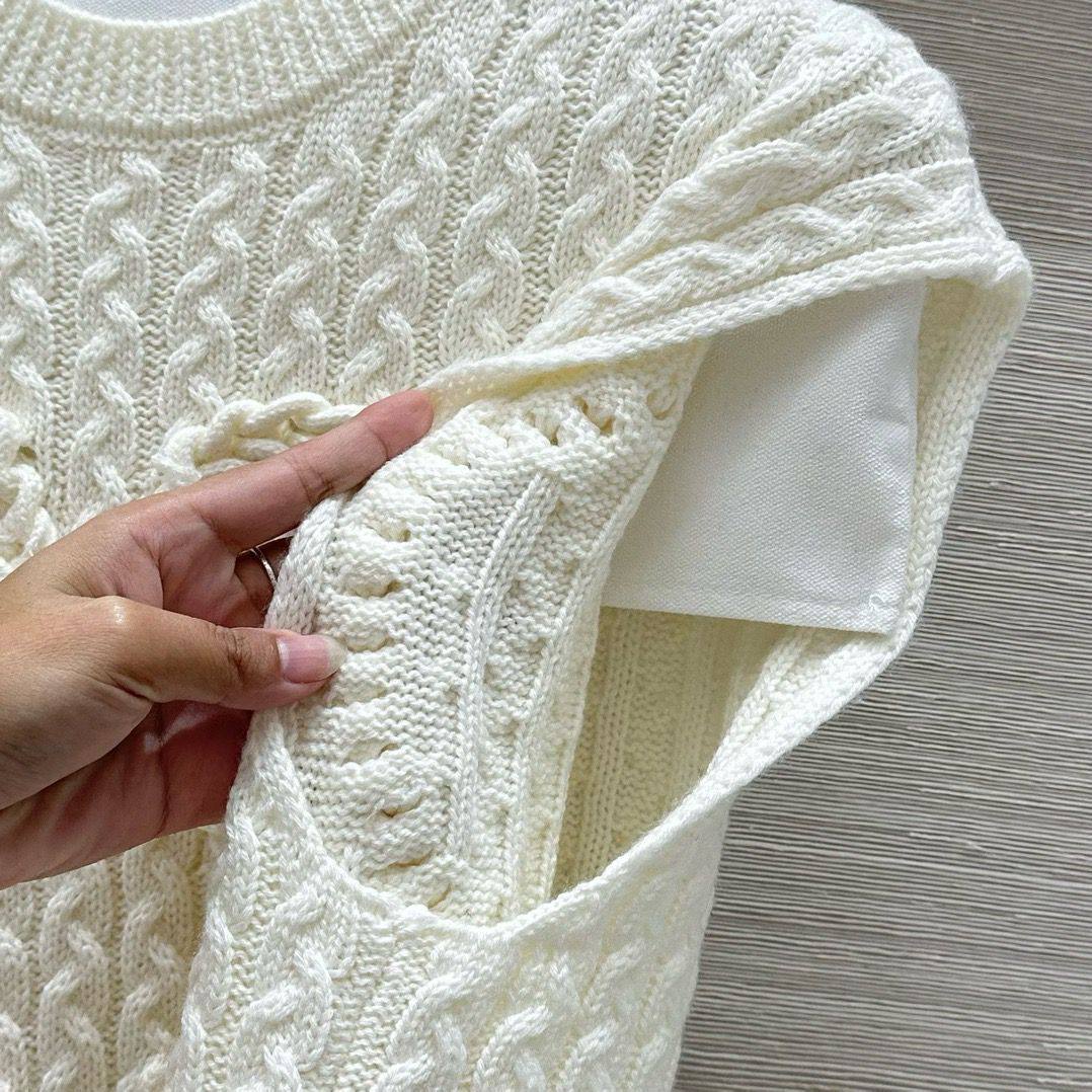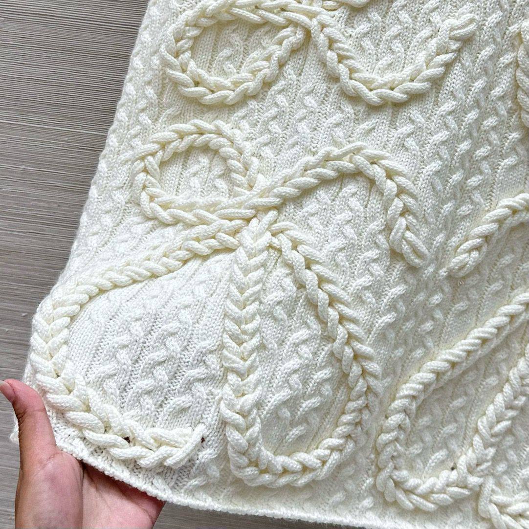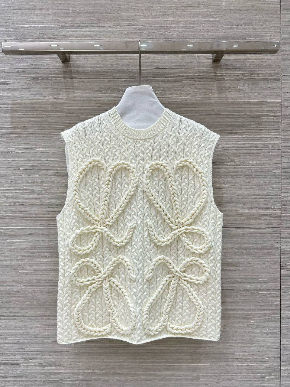 Жилет Loewe (LUX-113706) – это стильный трикотажный жилет кремового цвета, выполненный в узнаваемом дизайне бренда. Жилет имеет узорчатую текстуру и оригинальные элементы декора в виде бантов, что делает его выразительным элементом гардероба. Он идеально подходит для создания многослойных образов в прохладное время года.