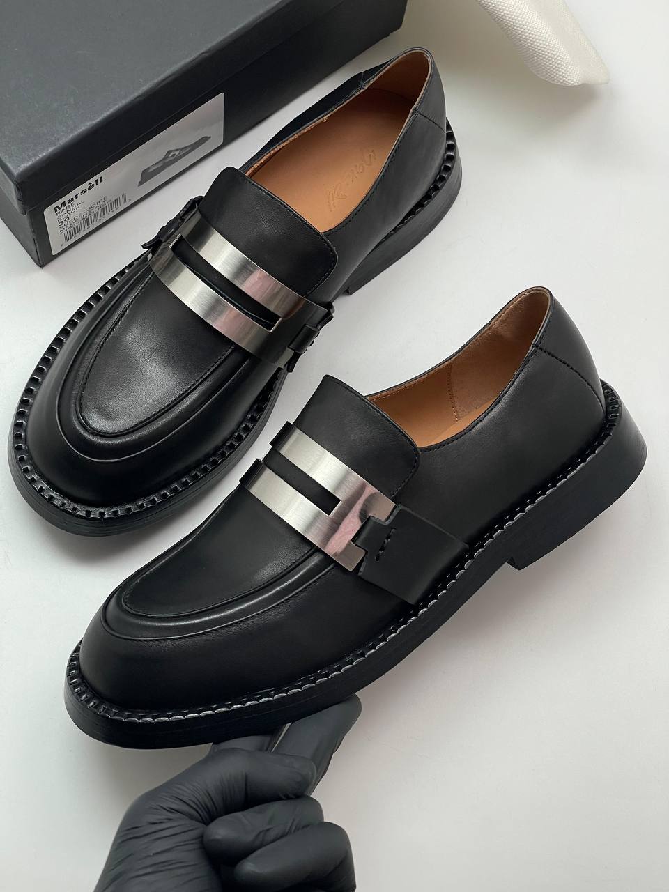 Лоферы Mars?ll, модель LUX-102453, представляют собой классическую обувь в черном цвете с массивной подошвой и декоративной металлической пряжкой. Они сочетают в себе элементы элегантности и современной моды, идеально подходят для создания стильных образов.