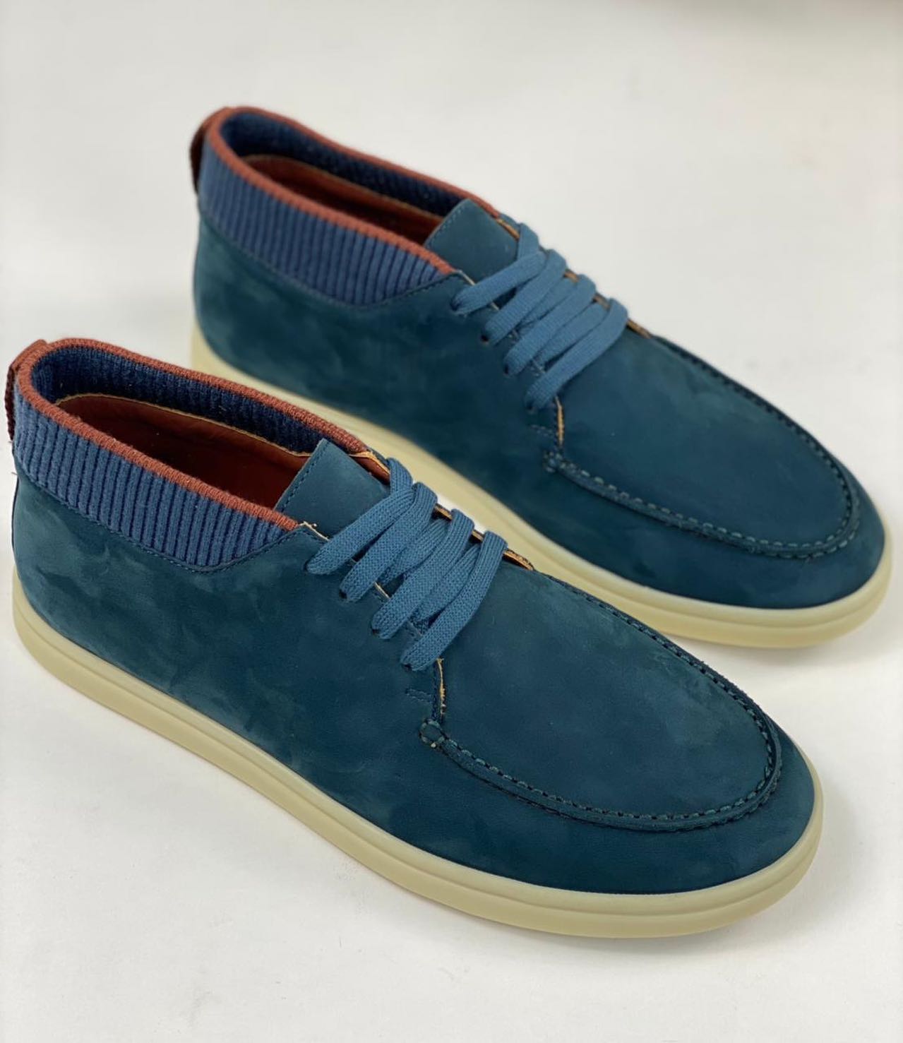 Эти ботинки Loro Piana LUX-43081 представляют собой стильное сочетание классического дизайна и современного комфорта. Выполненные в глубоком синем цвете, они идеально подойдут для создания элегантных повседневных образов. Модель отличается мягкой замшевой отделкой и контрастной трикотажной вставкой вокруг щиколотки, добавляющей оригинальности.
