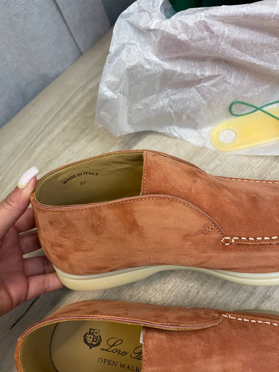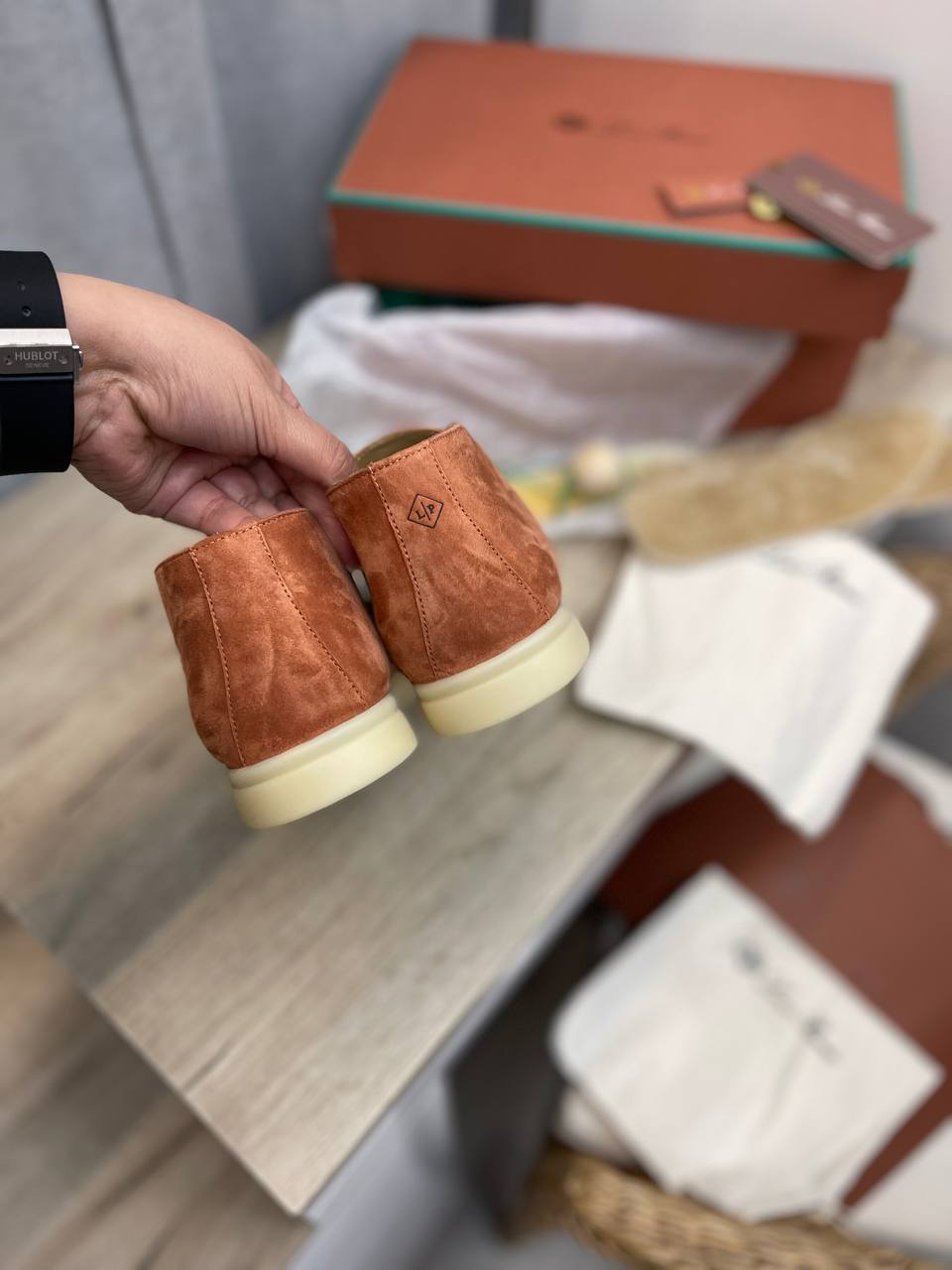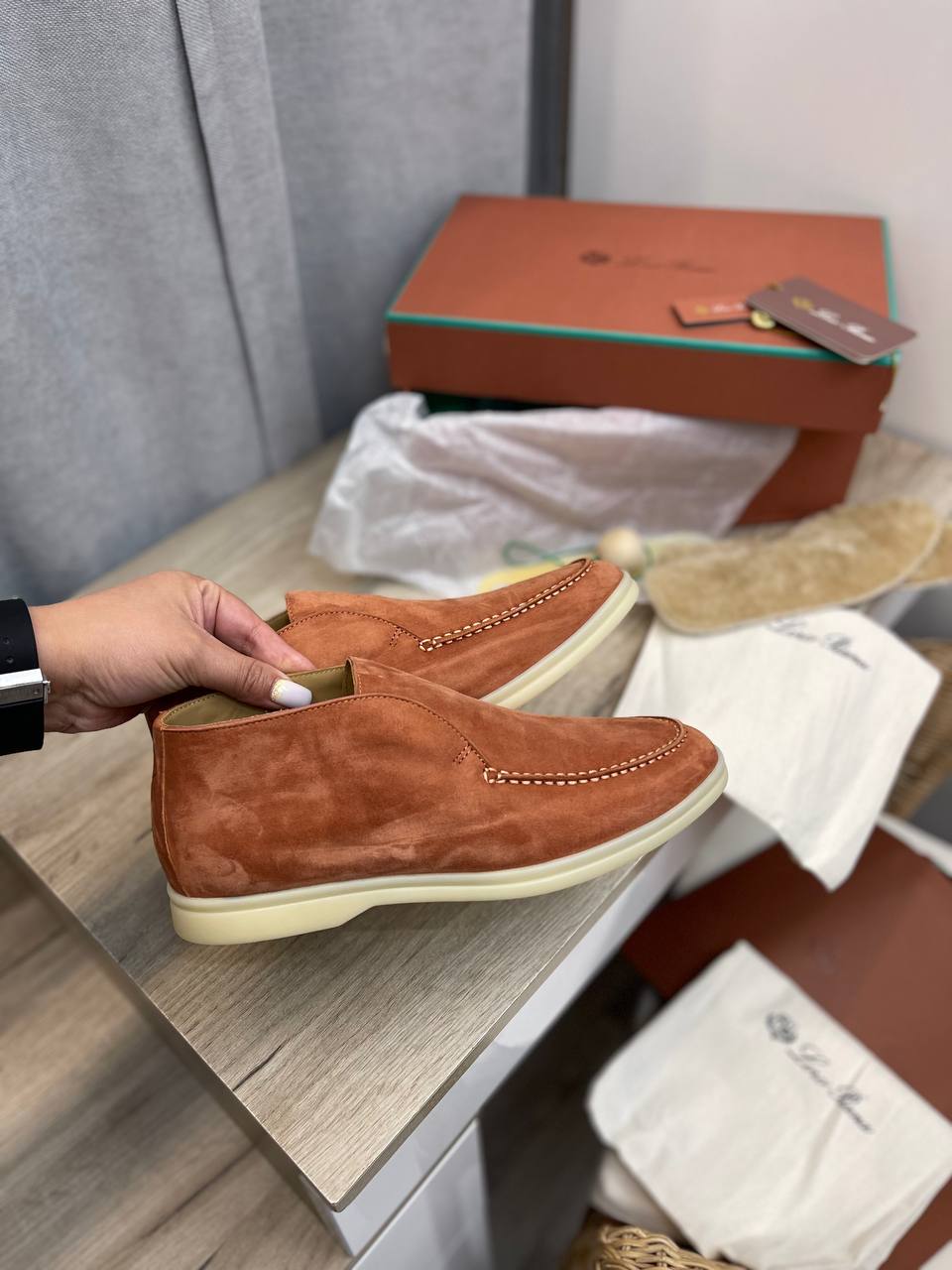 Ботинки женские Loro Piana LUX-95884 — это стильная обувь в стиле кэжуал, выполненная в рыжем цвете. Ботинки имеют замшевую текстуру и идеально подойдут для повседневной носки.