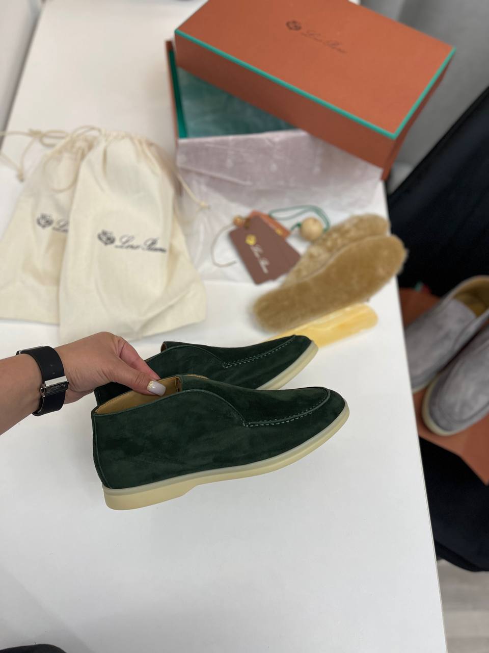 Ботинки женские Loro Piana LUX-95375 — это стильная обувь для повседневного использования. Ботинки выполнены в темно-зеленом цвете, имеют лаконичный дизайн. Они подойдут для создания комфортных и модных образов.