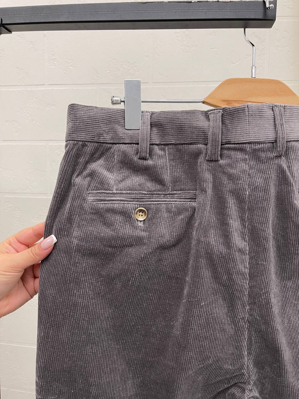 Брюки Loro Piana LUX-101605 – это элегантные брюки, выполненные в классическом стиле. Их основной цвет – серый, с выраженной текстурой в виде рубчика, что придает изделию благородный вид. Такие брюки подойдут для создания как повседневных, так и более формальных образов.