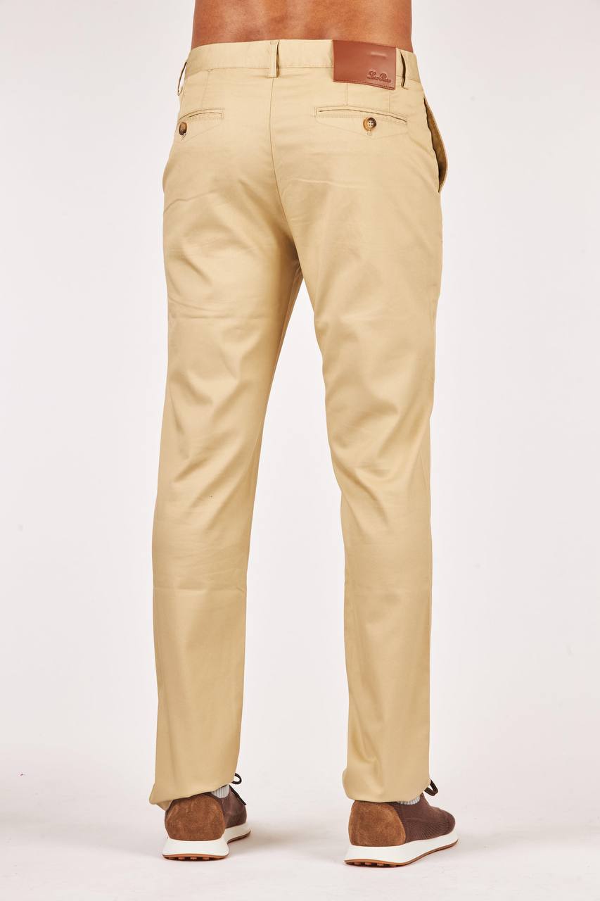 Брюки Loro Piana LUX-103574 представляют собой элегантные брюки классического кроя. Цвет брюк – песочный, что делает их универсальными для различных образов. Ткань выглядит гладкой, что придает изделию утонченный вид и подходит для повседневной носки, а также для деловых встреч.