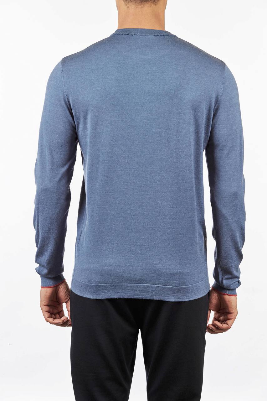 Джемпер Loro Piana LUX-95551 — это элегантный предмет гардероба, выполненный в классическом стиле. Джемпер небесно-синего цвета с круглым вырезом и длинными рукавами, а также красной отделкой на манжетах. Его универсальность позволяет сочетать его с различными элементами гардероба, создавая как повседневные, так и более формальные образы.