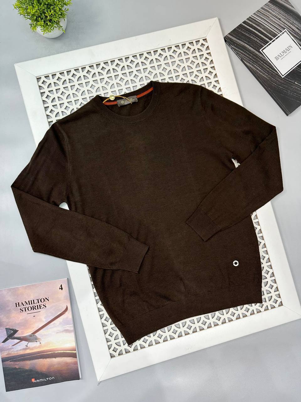 Джемпер Loro Piana LUX-97382 — это элегантный предмет гардероба, который сочетает в себе стиль и комфорт. Он выполнен в классическом стиле, с круглым вырезом и длинными рукавами, что делает его универсальным для различных образов. Цвет джемпера — насыщенный коричневый, с гладкой текстурой, подчеркивающей его изысканность.