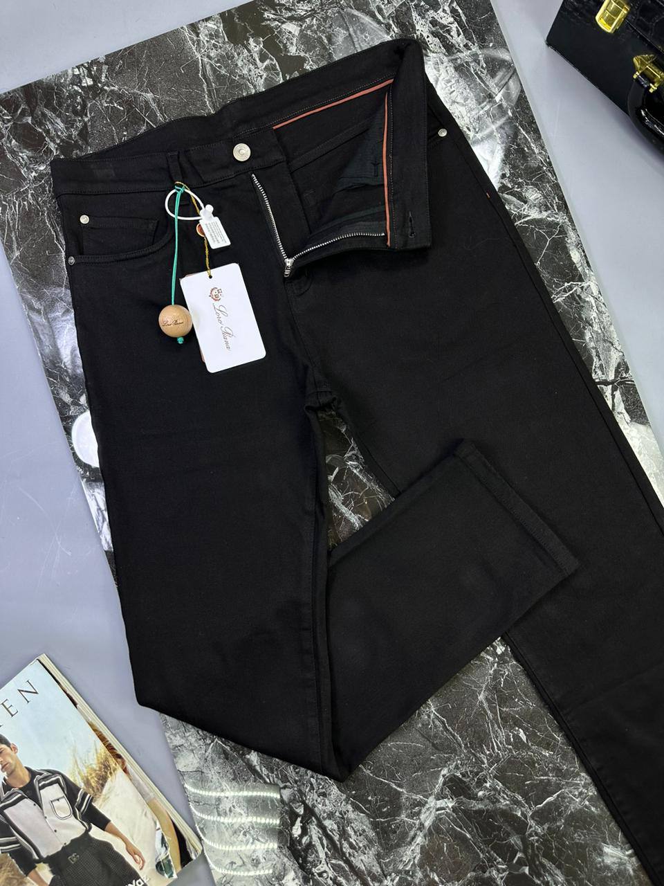 Джинсы Loro Piana LUX-96193 — это стильные черные джинсы классического кроя, которые подойдут для различных образов. Они имеют плотную текстуру и обеспечивают комфорт при ношении. Эти джинсы отлично подойдут для повседневной носки или для создания более формальных нарядов.