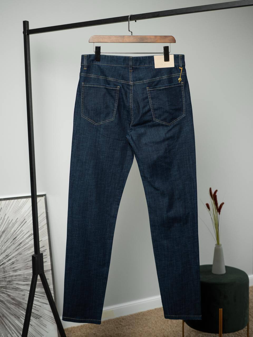 Джинсы Loro Piana LUX-118804 – это классические джинсы прямого кроя, выполненные в темно-синем цвете. Джинсы имеют традиционный дизайн с пятью карманами и застежкой на молнию и пуговицу. Идеально подойдут для создания повседневных образов.