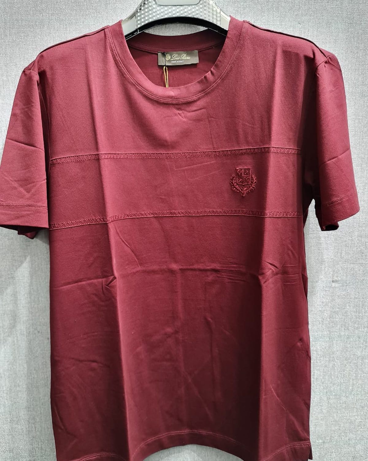 Эта бордовая футболка Loro Piana LUX-44696 представляет собой идеальное сочетание классического стиля и современного комфорта. Изделие декорировано горизонтальными рельефными полосами и вышитым логотипом бренда, что добавляет ему элегантности. Футболка отлично подойдет как для повседневного ношения, так и для создания более изысканных образов.