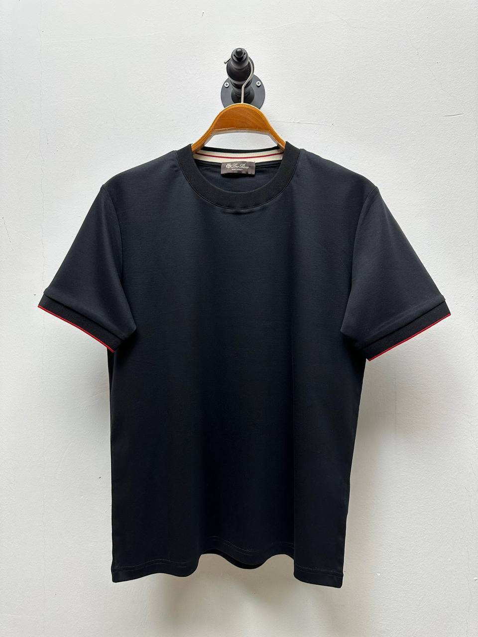 Футболка Loro Piana LUX-89084 — это стильная футболка классического кроя в черном цвете. Она выполнена из гладкого материала и имеет круглый воротник. Футболка универсальна и подходит для создания как повседневных, так и более формальных образов.