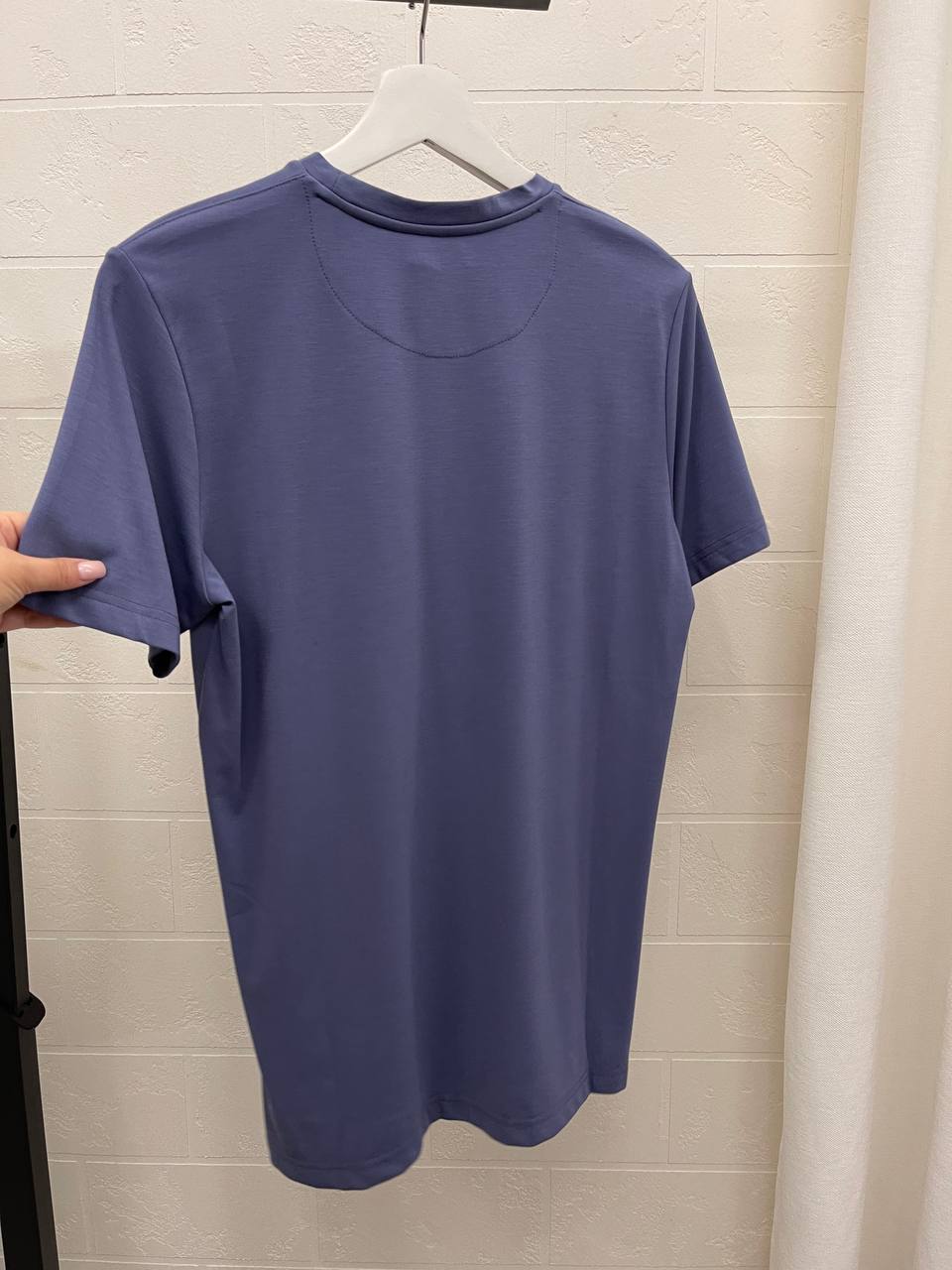 Футболка Loro Piana LUX-103828 — это воплощение элегантности и комфорта. Она выполнена в классическом стиле с круглым вырезом и короткими рукавами, имеет лаконичный дизайн в синем цвете. Такая футболка подойдет для создания как повседневных, так и более формальных образов.
