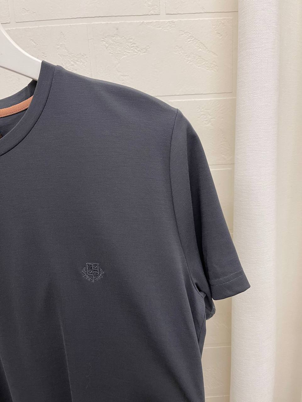 Футболка Loro Piana LUX-103829 — это элегантный предмет гардероба, выполненный в классическом стиле. Цвет футболки — серый, однотонный. Она идеально подойдет для создания повседневных и утонченных образов.