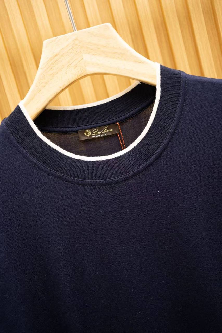 Футболка Loro Piana LUX-115175 — это элегантная футболка в классическом стиле. Она выполнена в темно-синем цвете с контрастными белыми деталями на воротнике и манжетах, что придает ей изысканный вид. Идеально подходит для повседневного гардероба.