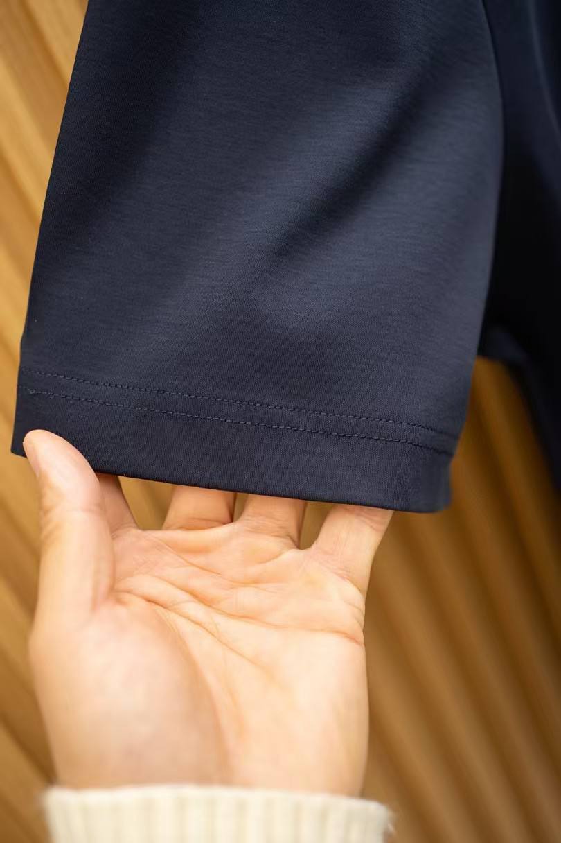 Футболка Loro Piana LUX-116714 выполнена в минималистичном стиле, идеально подходящем для создания повседневных образов. Темно-синий цвет и гладкая текстура ткани придают ей элегантный вид. Эта футболка предназначена для тех, кто ценит комфорт и стиль в каждой детали.