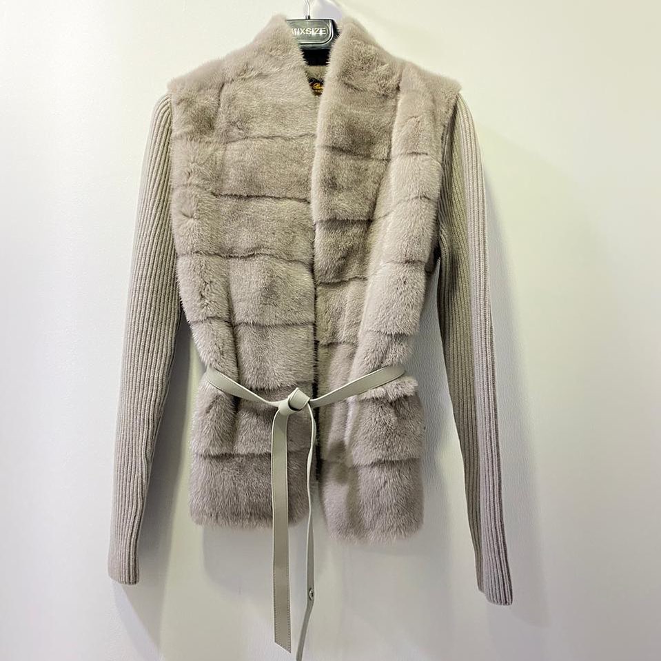Кардиган Loro Piana LUX-34175 представляет собой элегантное сочетание изысканного меха и мягкой трикотажной вязки. Этот женский кардиган выполнен в спокойном сером оттенке, что придает ему универсальность и возможность легко сочетать с различными элементами гардероба. Модель дополнена поясом, который подчеркивает талию и создает женственный силуэт.