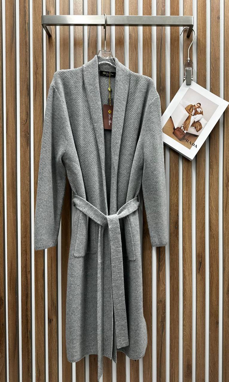 Кардиган Loro Piana LUX-110658 – это воплощение элегантности и комфорта. Он выполнен в классическом стиле, с поясом на талии и длиной до середины голени. Серый цвет делает его универсальным дополнением к любому гардеробу, подходящим для повседневной носки и особых случаев.