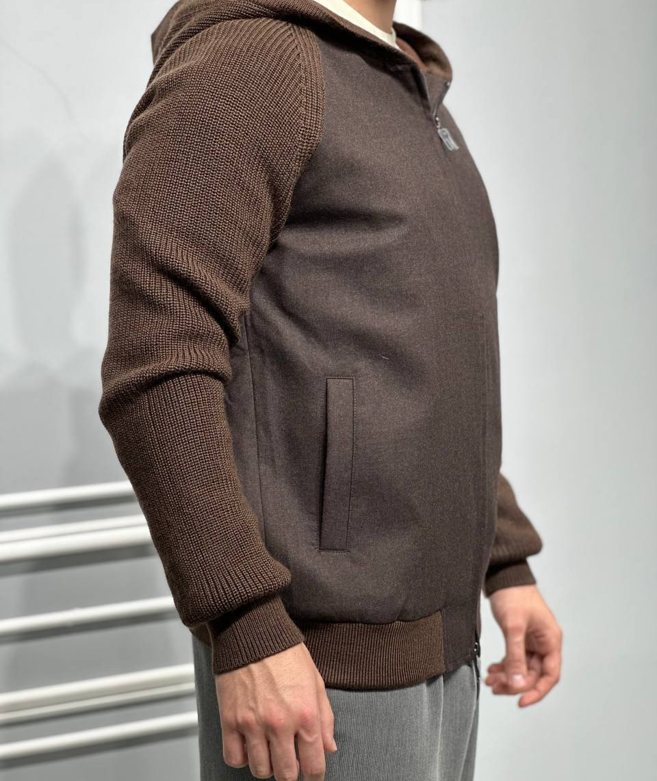 Кашемировый бомбер Loro Piana LUX-96711 представляет собой изысканный предмет гардероба, сочетающий в себе стиль и комфорт. Бомбер выполнен в коричневом цвете с вязаными рукавами, что придает ему элегантный вид. Этот бомбер идеально подходит для создания стильных повседневных образов.