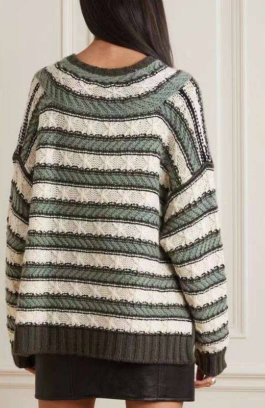 Кашемировый свитер Loro Piana LUX-94118 — это изысканный предмет гардероба, который сочетает в себе элегантность и комфорт. Свитер выполнен в классическом стиле с V-образным вырезом, а также горизонтальными полосками. Это делает его универсальным и подходящим для различных образов.
