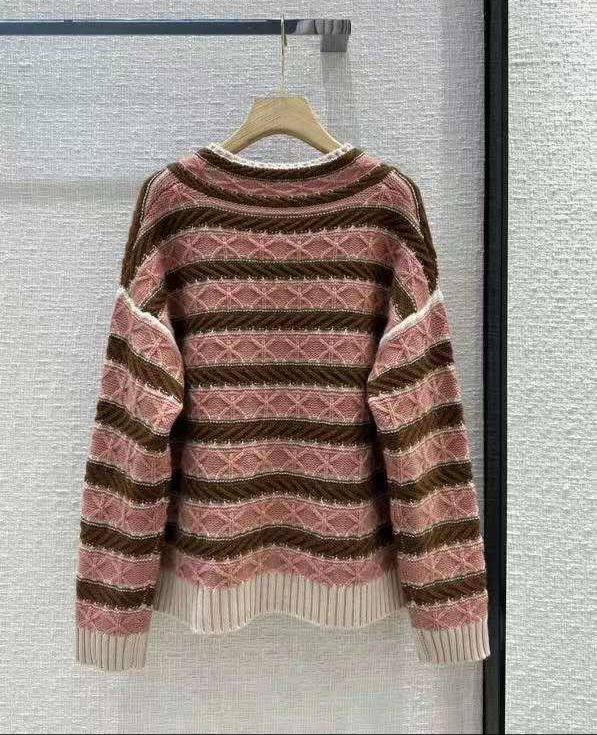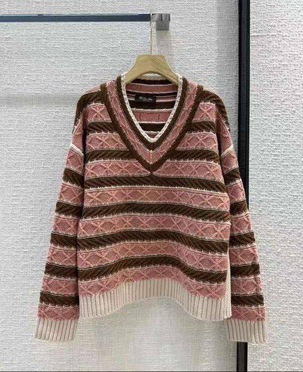 Кашемировый свитер Loro Piana LUX-94568 — это стильный предмет гардероба, который сочетает в себе элегантность и комфорт. Свитер выполнен в классическом стиле, с V-образным вырезом и полосатым узором, сочетающим оттенки коричневого, розового и кремового. Идеально подойдет для повседневного использования, а также для создания более элегантных образов.