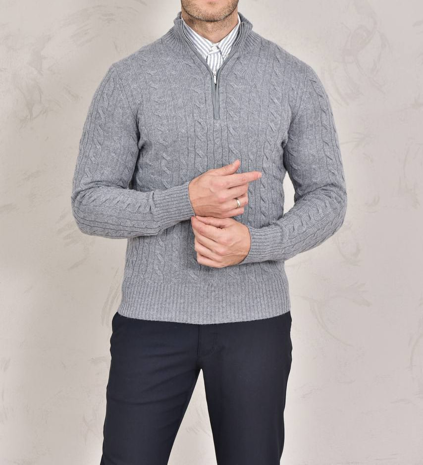 Кофта Loro Piana LUX-98313 – это элегантный предмет гардероба, выполненный в классическом стиле. Она выполнена в универсальном сером цвете, что делает ее идеальной для различных образов. Кофта имеет текстуру в виде косичек и застегивается на молнию, что придает ей современный вид.