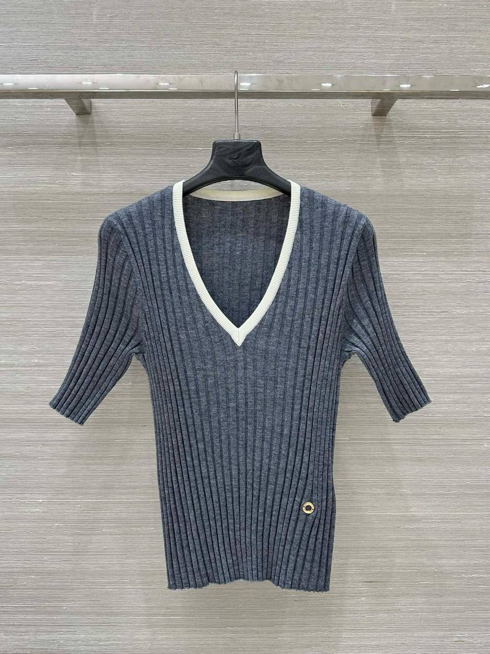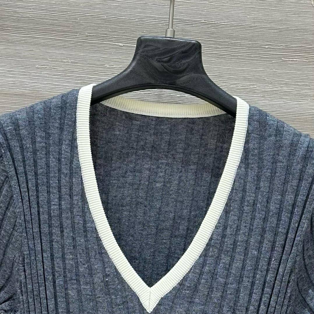 Кофта Loro Piana LUX-116398 - это стильный предмет гардероба, сочетающий в себе элегантность и комфорт. Классическая кофта с V-образным вырезом, с коротким рукавом. Изделие выполнено в сером цвете с контрастной белой отделкой горловины.